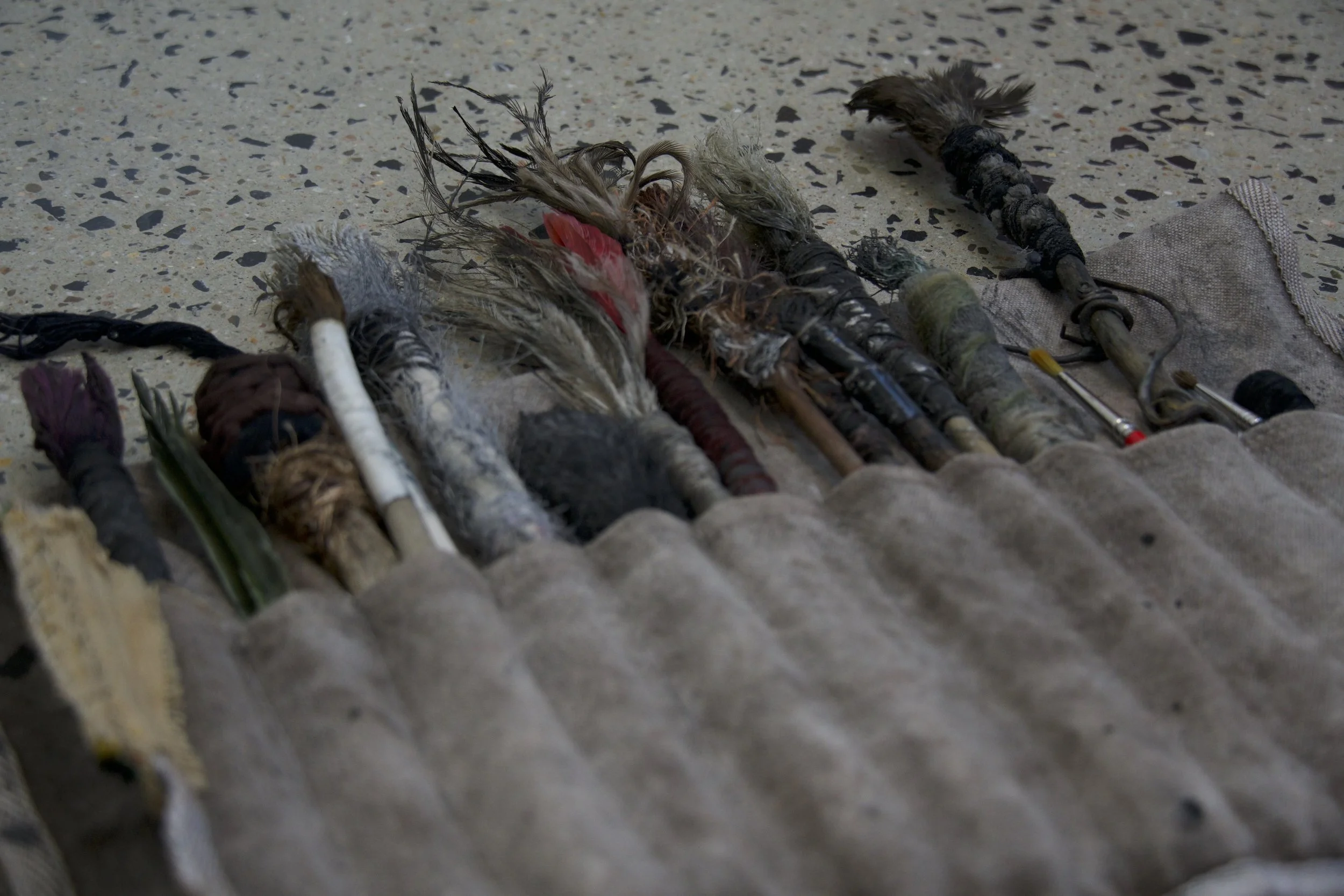Lorna started making her own brushes after a residency in Venice with Allison B. Cooke, and then became known as “the brush maker”. The urge to make brushes goes back to her art school days, when she saw a documentary on Arthur Boyd’s work and processes. She was inspired by his huge canvases and that he was using his own handmade brushes - the splashing motions being particularly inspiring.